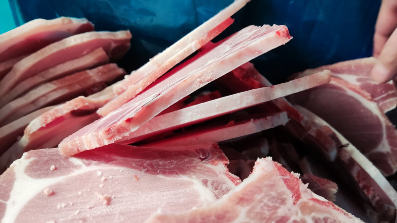 大型肉類食品(pǐn)加工廠全自動鋸骨機生產現場(chǎng);