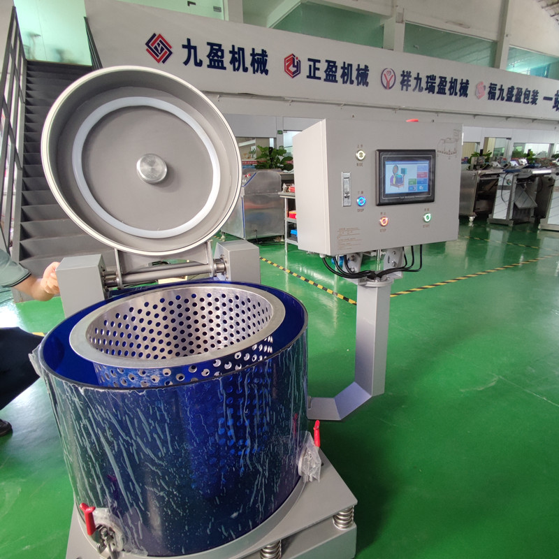 新一代果(guǒ)蔬脫水甩幹機;2022年8月15日在九盈機械(集團)公司和福(fú)九盛盈包裝公司綜合展(zhǎn)廳下線展示;可實(shí)現(xiàn)數字(zì)智能設置,高效產能,一機(jī)多用;蔬菜 ,水果,鮮肉,排骨等脫水甩幹功能。