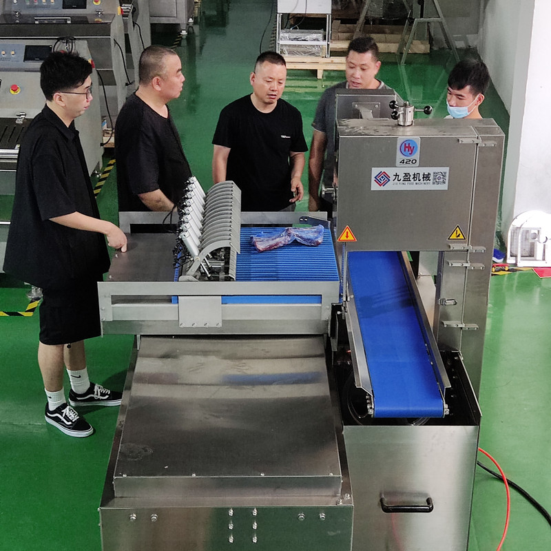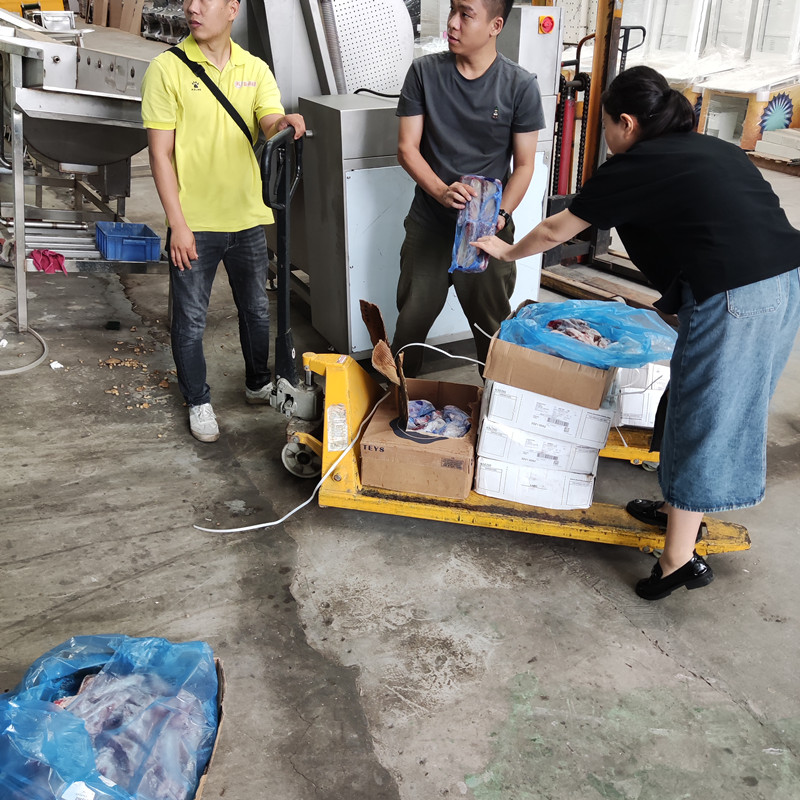 2022年8月18日; 某知名肉製(zhì)品加工企業負責人帶領生(shēng)產部門相關人員親臨我司現場;一天八噸的肉骨(gǔ)生(shēng)產量,全自動鋸骨機,多鋸(jù)條切骨機,排骨清洗機,排骨脫水甩(shuǎi)幹機,如數亮(liàng)相,現場試機;細致周到的服務受到了客戶的讚譽和肯定;在節約客戶大(dà)量時(shí)間的同(tóng)時也提升(shēng)了加工企業對(duì)新型設備的認知;
