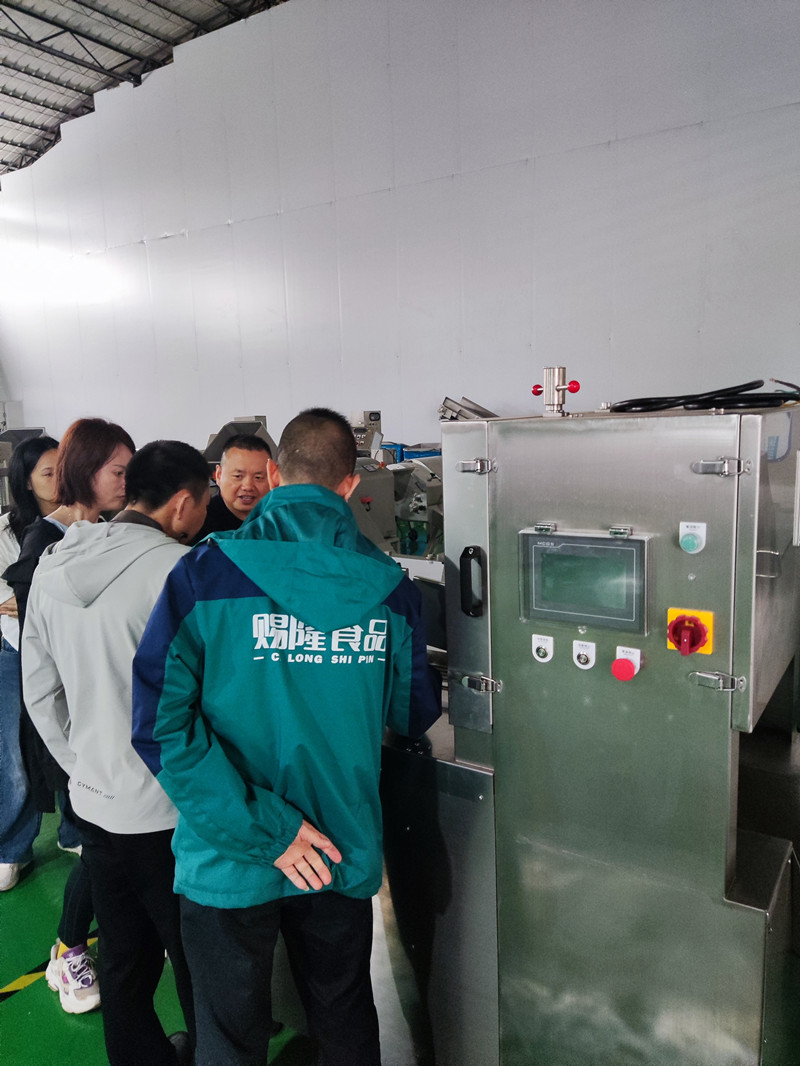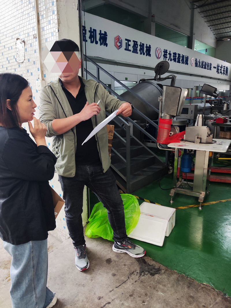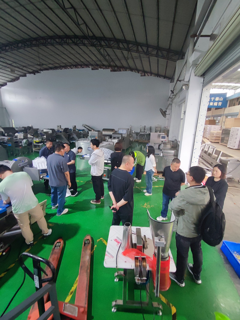 2024年4月8日、廣州市九盈機械集團公司;www.91视频.com食品機械綜合展廳; 今天上午三波客戶到訪,有現場考察交流的,試機(jī)打樣(yàng)的(de),定(dìng)製設備驗收的(de)都聚到一起了,果(guǒ)蔬切丁機 凍肉(ròu)切丁機 雞胸肉切片機 洗菜機 砍排機悉數亮相;這生意杠杠(gàng)滴(dī)!客戶滿意才是(shì)王道。