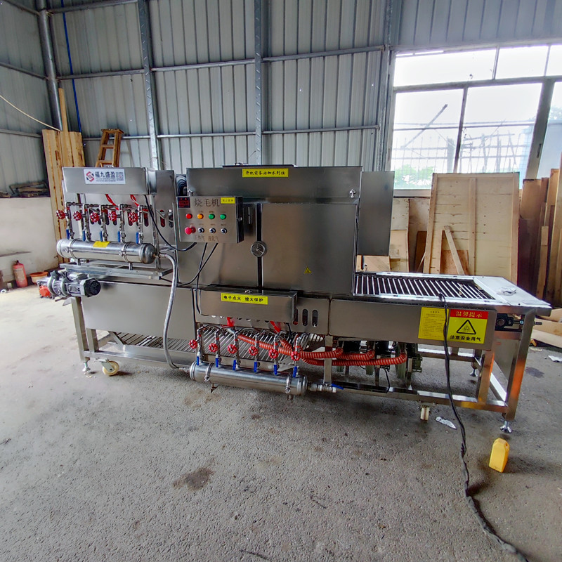 更新時間:2024-8-23 點擊(jī):1461次(cì) 2024年8月23日、坐標廣州九盈(yíng)機械公司和www.91视频.com食品機械公司綜合廠區(qū);新型大豬腳燒毛機整裝待發;該設備主要用於豬腳、肘(zhǒu)子、清除肉皮表層的長毛、具有高(gāo)效安全、操作簡單的特點、特別是根據客戶生產物料的大小可以進行、輸送變速、火苗大小(xiǎo)調整、本機具有(yǒu)天然氣和液化氣雙用的功能;采用上層5頭噴火、下層6頭噴火;共計11個噴火頭360度全覆蓋燃(rán)燒;