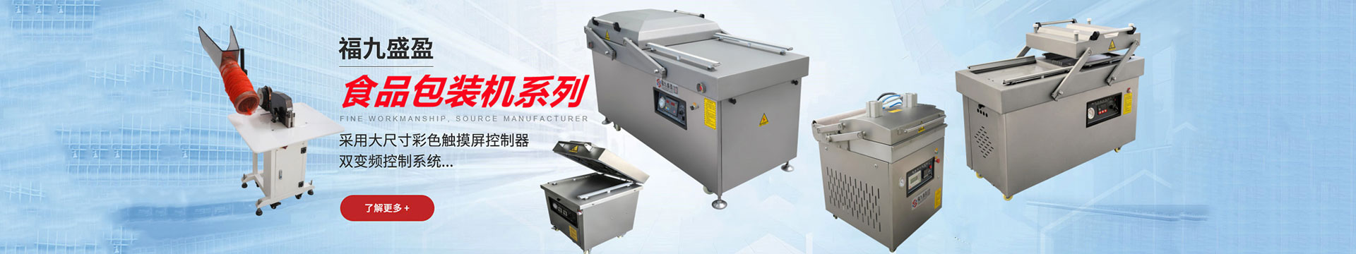 真(zhēn)空包裝機、貼體包裝機、枕式包裝(zhuāng)機 、稱重分級機、網袋包裝機、封口機、液體醬料包(bāo)裝機、砍排機(jī),鋸骨機、切肉機 、