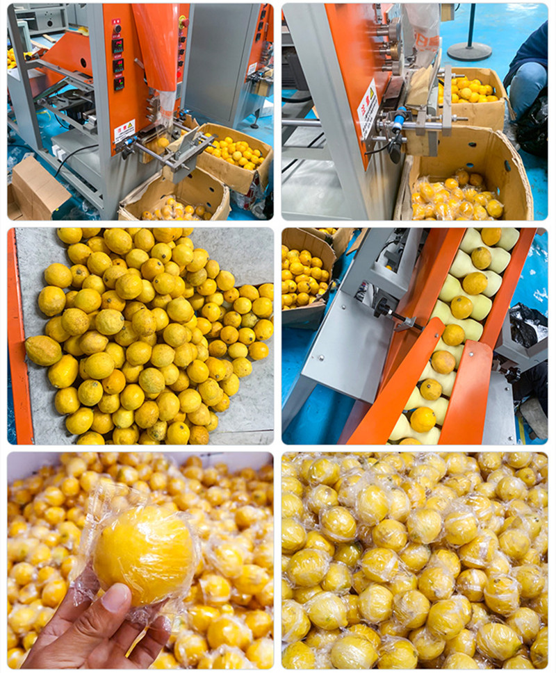 本機主要適用於瓜果 果徑40-90mm 檸檬,柑橘、臍橙(chéng)、沃柑、百香果等圓(yuán)形水果保鮮膜套袋包(bāo)裝。