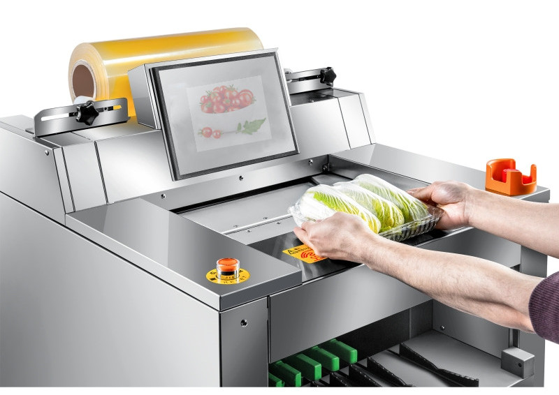 適用各種保鮮膜(PVC/PO), 建議使用機用PVC膜或機用PO膜,國(guó)產進口皆可;部分國外設備隻能使用進口(kǒu)保鮮膜。有無托盤均可包裝,且適用於多(duō)種形態的托盤(如圓形、六邊形等等)