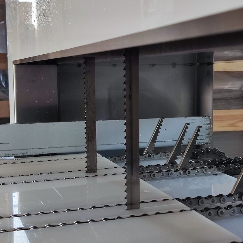 簡(jiǎn) 介:我們公司自主設計、研發、製造的多段鋸(也稱連續式鋸骨機)是一款多用途、多鋸條的鋸骨機,專門用於冷凍食品切割(gē)。它可以輕鬆應對豬蹄、凍肉、排骨、牛羊(yáng)肉(ròu)、雞鴨等(děng)食品的(de)切條和切塊,適用於零下(xià)-3/-18度的冷凍食品鋸切。我們可以(yǐ)根據客戶需求,定製2鋸條、4鋸條、6鋸條、8鋸條等多段鋸,切割(gē)規格範圍為2CM-10CM。它是肉類加工企業的最佳選擇。快來聯係我們,選購一款屬於您的優選設備(bèi)吧!