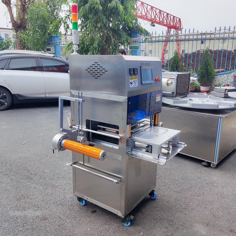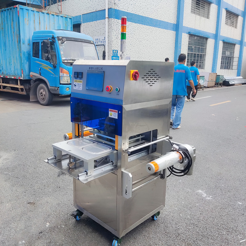 新型商用盒(hé)裝封口機主要用大米(mǐ)飯、鮮肉類、熟(shú)肉類、果蔬(shū)類、以及工業類(醬料(liào)、泥料、小部件)等盒裝封口包裝。具有高效安全;操作簡單、密封嚴(yán)、不漏、不爆等包裝特點(diǎn),適合於普通材質包裝和高溫耐蒸煮材質包裝。
